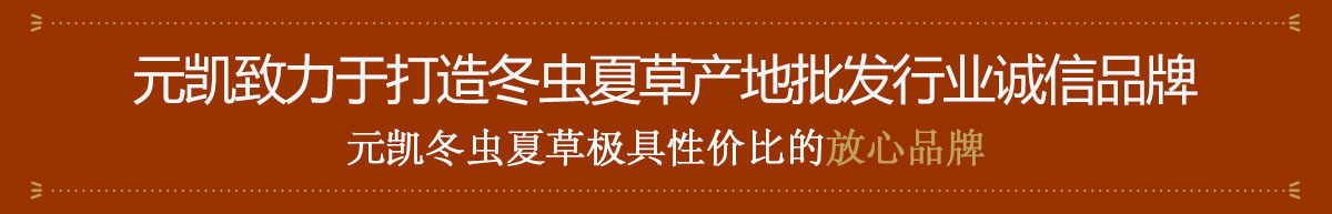 公司專業致力于青藏高原野生冬蟲夏草銷售、采收、精選包裝和現代化生產、研發(fā)等,并且在青海玉樹西藏那曲設立了采購站,專門采購地道的野生冬蟲夏草,充分保證了產品的品質。元凱長期向國內眾多著名藥材經銷商、港澳臺以及東南亞中藥材采購商供應冬蟲夏草,多次被省、市、縣授予多種榮譽稱號“青海省知名商標”、“青海省誠信單位”、“青海省名優(yōu)企業”、“守合同重信用企業”等。